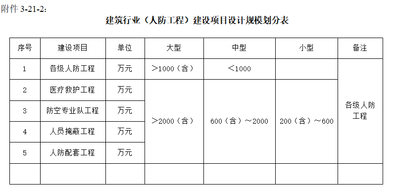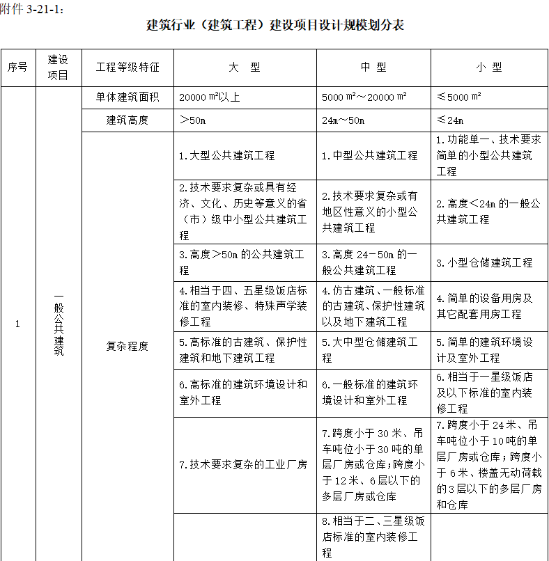(建筑行業(yè)建設項目設計規(guī)模劃分見附件3-21)
