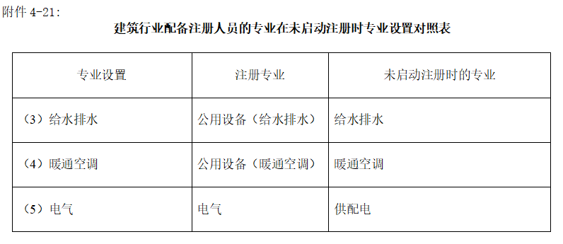 3.建筑工程丙級資質(zhì)的專業(yè)設置中,(3)給水排水、(4)暖通空調(diào)專業(yè)各配備1名專業(yè)技術(shù)人員,其中1人為注冊人員。
